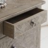The chest of drawers is part of a larger collection of exquisitely produced furniture which has been gently aged to produce the naturally bleached effect of the wood for an informal and relaxed look. The design identifies with the traditional French Colonial style, but the beautifully aged finish is equally as suiting for a modern interior and this practical chest of drawers is perfect for a bedroom, hallway or dining room.