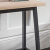 Tall and sleek with elegant lines, the solid oak top sits on simple beech legs finished in a matt black and the useful slatted shelf can be used for a number of storage possibilities. The simple design of this beautiful console table lends itself perfectly to accessorising to your own personal taste and style with a table lamp or curated trinkets.